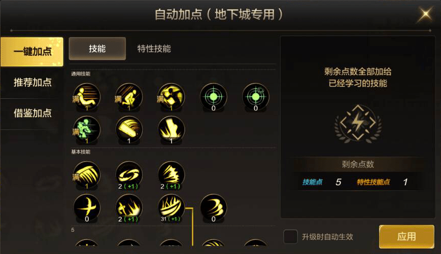 懒人党可以直接使用游戏内的【一键加点】功能,后续根据自身习惯再调整。