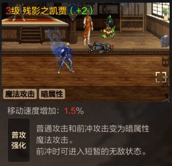 【残影之凯贾】提升技能等级后只增加移动速度,对伤害和防御能力没有影响,PVE只加1级即可,PVP可以加满。