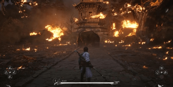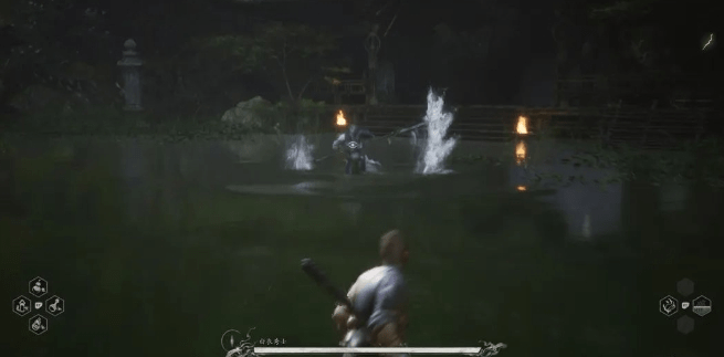 (2)可以打出轻击→重击的衔接技,这个技能(叫“识破”)如果是在敌人出招瞬间打出,可以打断部分敌人的部分攻击(大部分BOSS的连续攻击都打断不了,切记!),由于本作没有格挡和弹反,可以说“识破”就是决定了你在黑猴做一个翻滚蹭刀彩笔和压制棒打大师之间最大的分水岭!