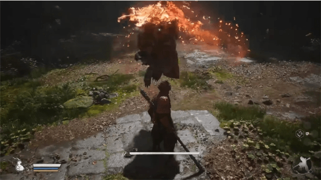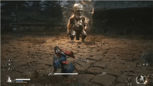 击败广智将必要的道具、资源收集之后,从广智的院子出来,沿着有石碑的小路继续前行,即可遇到第一个比较有难度的BOSS“幽魂”。