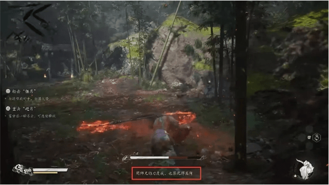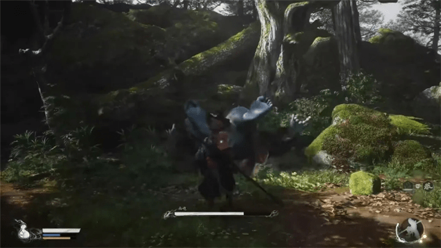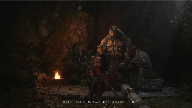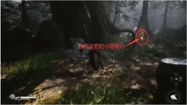 随着引导变身成为“金蝉”之后往前飞一段路会遇到分叉,此时往左沿着有篝火的小路继续前行,则可以遇到“广智”,也是2 2年第一支预告PV中的“刀狼教头”。
