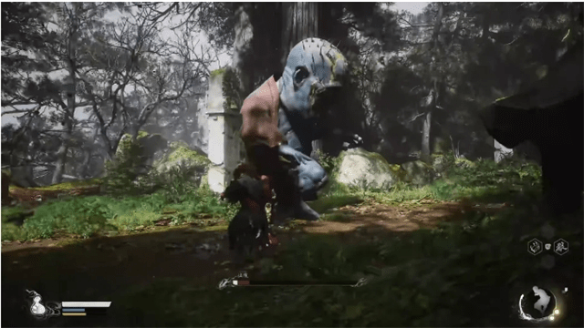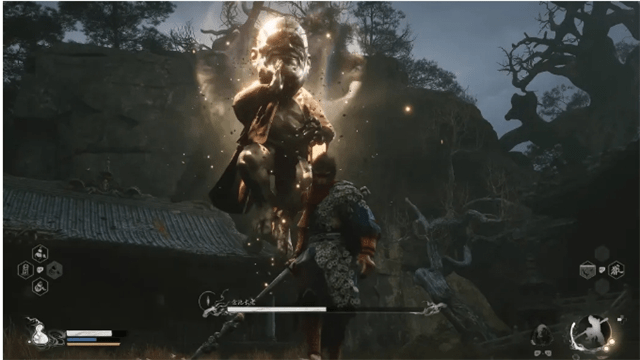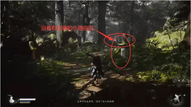 随后跟着引导一直前行,路过一个存档点之后会在竹林中遇到一个背着葫芦的老头,可以将葫芦进行升级,升级完告别这个老头儿,前行不久便会遇到另一个BOSS“广谋”。