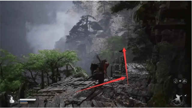 击败幽魂后,穿过山洞回廊,沿着栈道一路前行即可到达第二个土地庙(存档点),经过土地庙便会到达观音禅院。