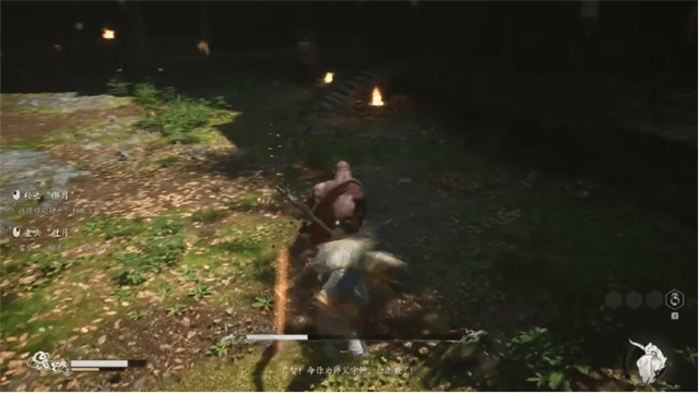 击败“金池长老”一路前行,会遇到第一章守关BOSS黑风大王,该BOSS有两个阶段,山脚下会遇到它的人形态,整体的技能形态与“广智”类似,注意他变成风之后的多次突进攻击即可。